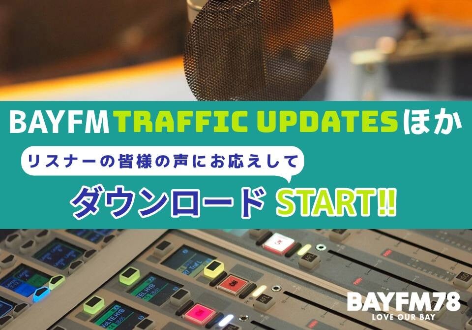 ラジオ局BAYFM(78.0MHz)のアップデイツで使用しているBGMを、音楽配信サービスにてダウンロード販売をしています。30年以上リスナーの皆様に愛され、楽曲配信のご要望を多数お寄せ頂いていたBGM。ベイエフエムといえばこれ!と多くの方に親しまれている「TRAFFIC UPDATES」をはじめ、「WEATHER UPDATES」の晴れバージョン、雨バージョン、「AIRLINE UPDATES」、「UPDATES(ニュース)」の5種類の楽曲を250円~261円で販売しています。お馴染みのBGMを是非お手元にいかがでしょうか?