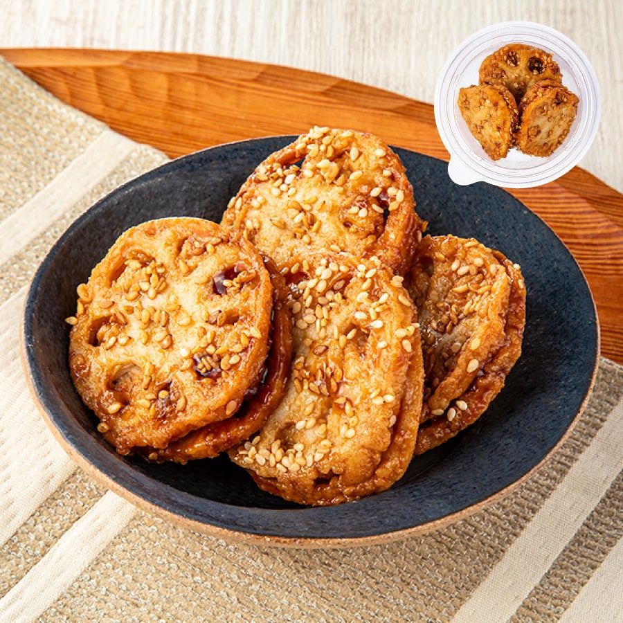 愛知県産のれんこんを使用。シャキシャキと食感の良いれんこんを使用することで、食べごたえのあるはさみ揚げに仕上げました。