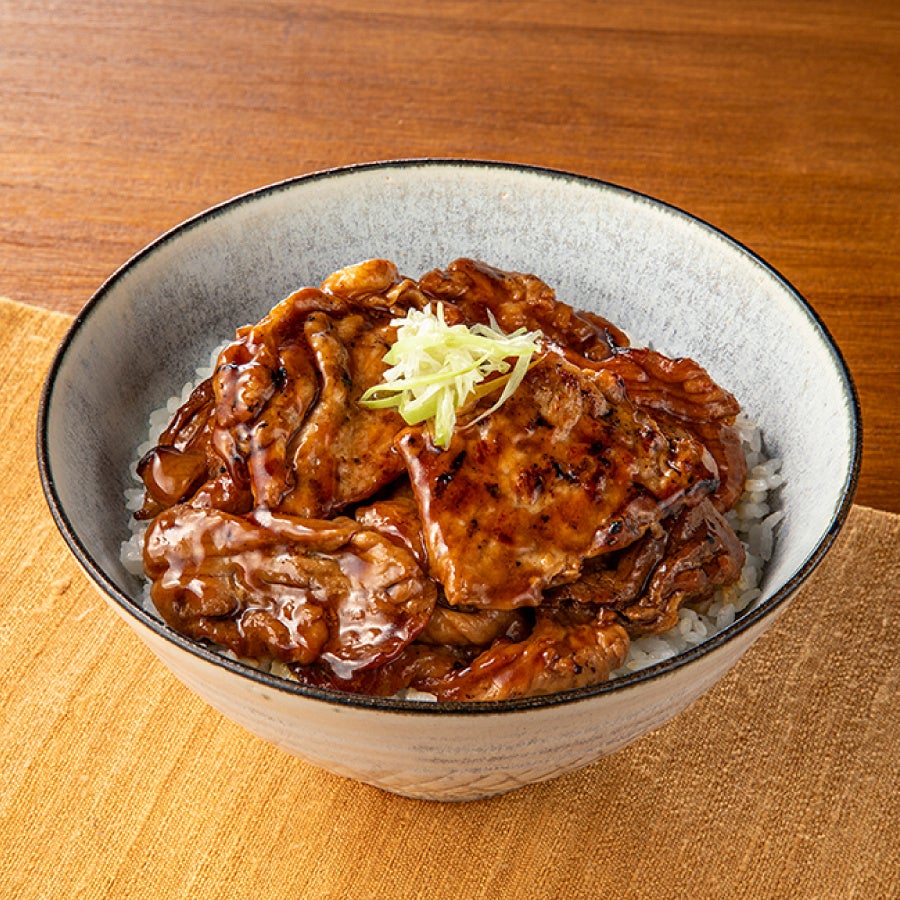 愛知県産のもち豚を使用した、炭火焼き豚丼。愛知県産のもち豚はもっちりとした食感が特長。炭火で焼き上げ、香ばしい風味を引き出しています。