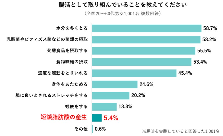 ・腸活として取り組んでいること、「短鎖脂肪酸の産生」は5.4%