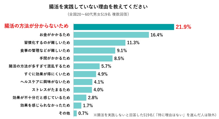 また、腸活を実践しない一番の理由は「腸活の方法が分からないから」