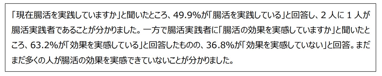 腸活実践者は多いが、その効果を実感できていない人も多い
