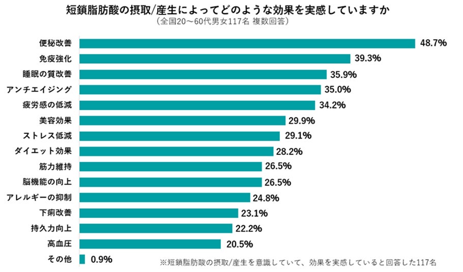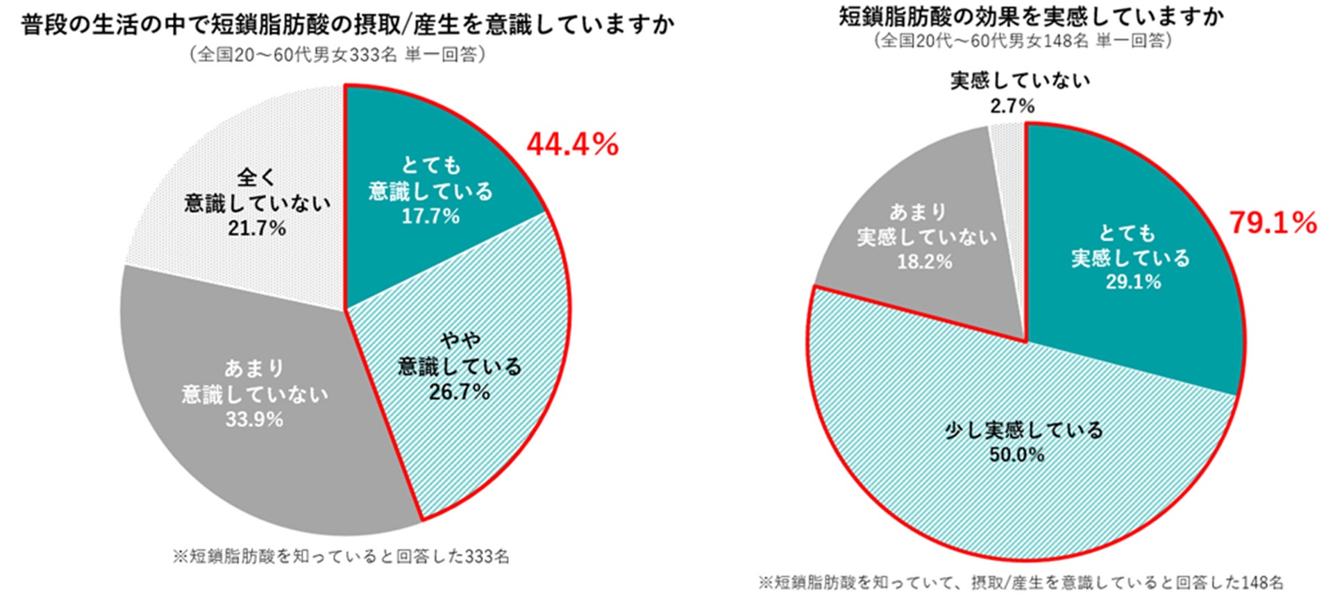 短鎖脂肪酸の摂取/産生を意識している人の多くがその効果を実感している
