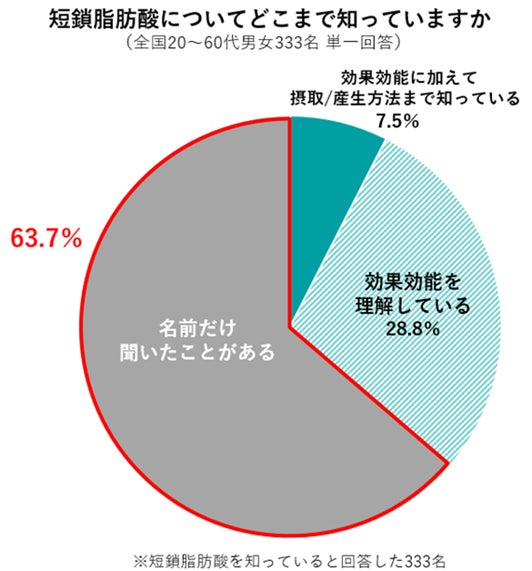 短鎖脂肪酸を知っている人でも6割以上が「名前だけ聞いたことがある」という状態