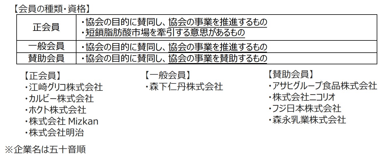 ■「短鎖脂肪酸普及協会」の会員企業一覧(2024年11月27日現在)