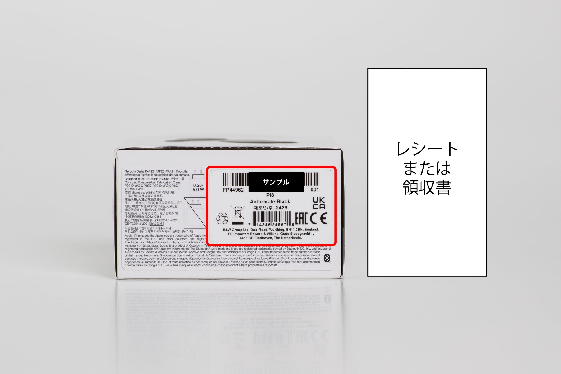 ※ 対象製品購入時の「領収書またはレシート」と「箱の底面のシール」を見本のように、重ならないように並べて1枚の写真になるように撮影してください。