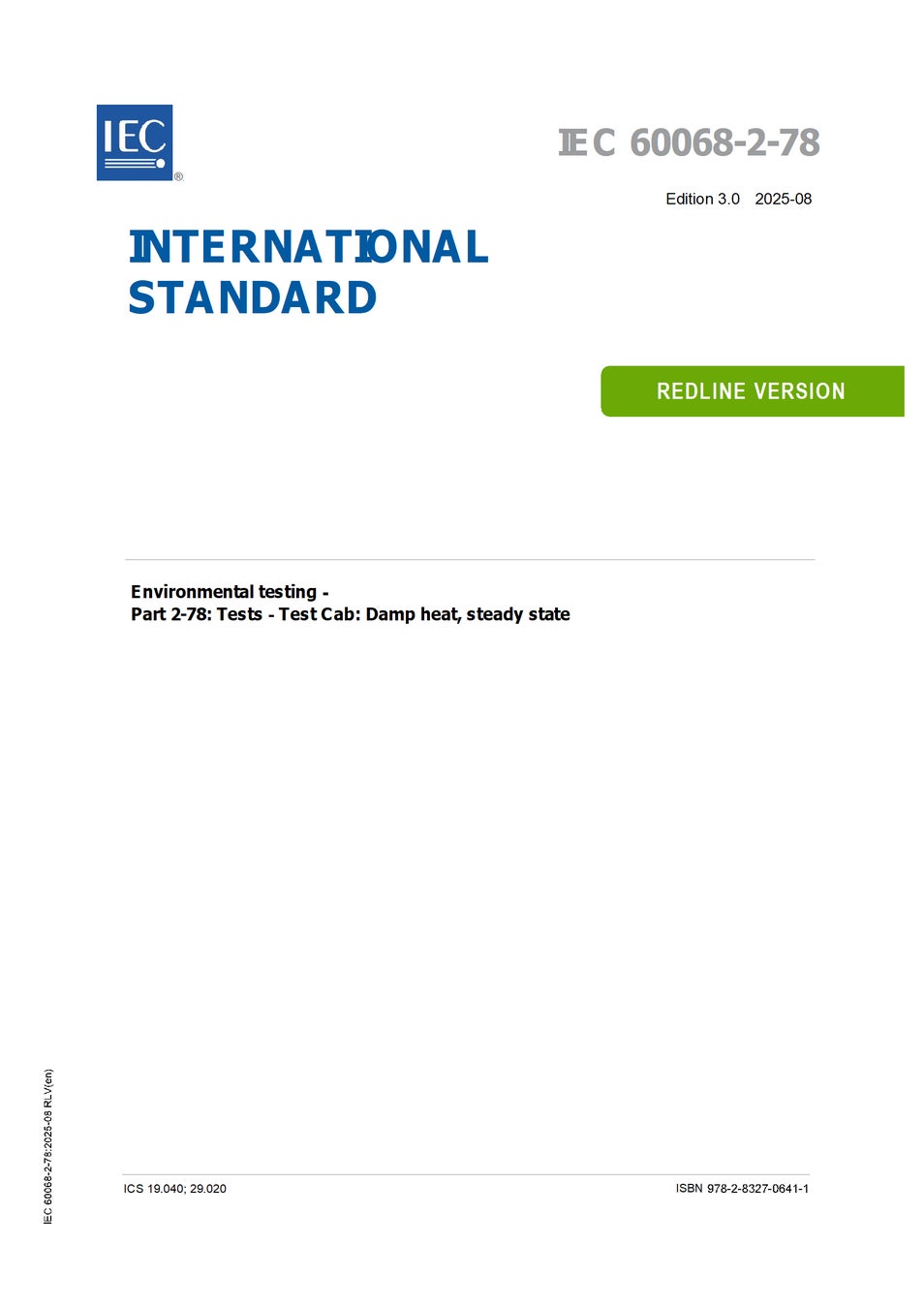 IEC 60068-2-78 Ed. 3.0:2025 RLV (Redline version) (en) 環境試験-第2-78部:試験-試験キャブ:高温高湿,定常Environmental testing - Part 2-78: Tests - Test Cab: Damp heat, steady state