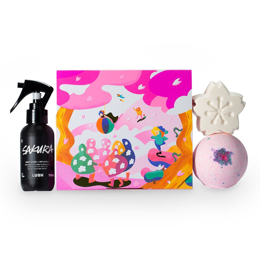 そんな季節には心とお肌から幸せな気持ちになれる商品が詰まったラッシュのギフトを贈ってみてはどうでしょうか。特に春らしいハッピーな気分になれる『サクラ ギフト』は、日本のお花見にインスパイアを受けて誕生しました。咲き誇るようなフローラルな香りに包まれるバスボム(入浴料)『桜日記』、ギフト限定ソープ『桜小道のポピンズ』、ボディスプレー『サクラボディスプレー』がセットになっています。お風呂のなかでも、お風呂を出てからも自分の好きな時にサクラの華やかな香りに包まれることができるギフトです。