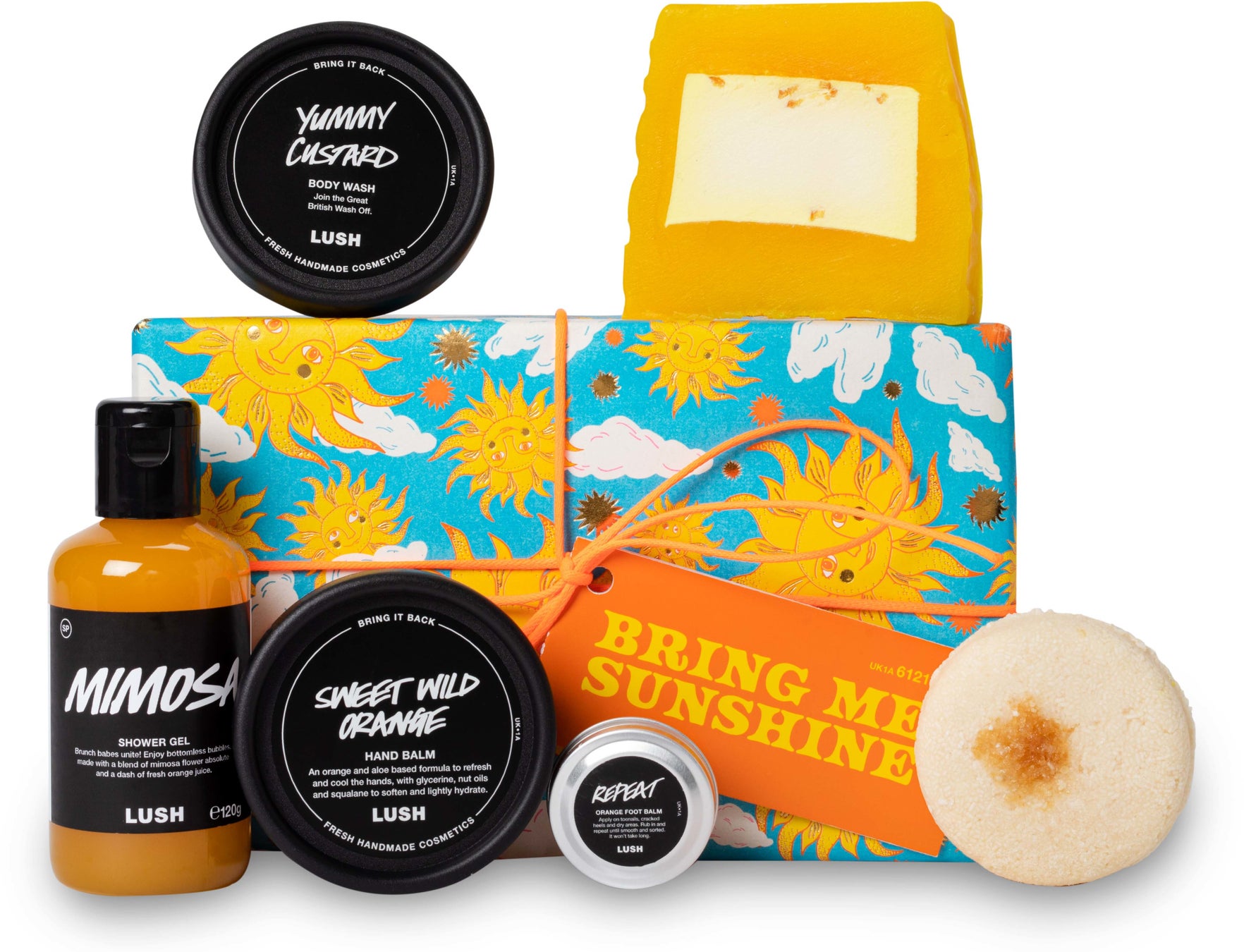 頭のてっぺんからつま先まで元気で明るい気分になれる香りに包まれるバスアイテムをセットにしたギフトです。ハンドバームやフットバームなどお肌を柔らかくするアイテムも入っています。
