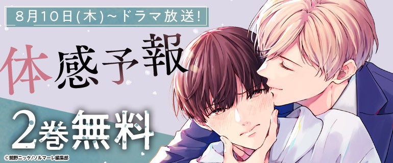 エヌ・ティ・ティ・ソルマーレ株式会社(本社:大阪市中央区、代表取締役社長:朝日利彰、以下NTTソルマーレ)が提供する国内最大級の電子書籍サイト「コミックシーモア」のオリジナル作品を創出するソルマーレ編集部BLレーベル「Ficus」で大人気連載中の『体感予報』(著者:鯛野ニッケ)のTVドラマ化が決定。本ドラマは、2023年8月10日(木) 25時29分よりMBSほかにて、放送がスタートします。