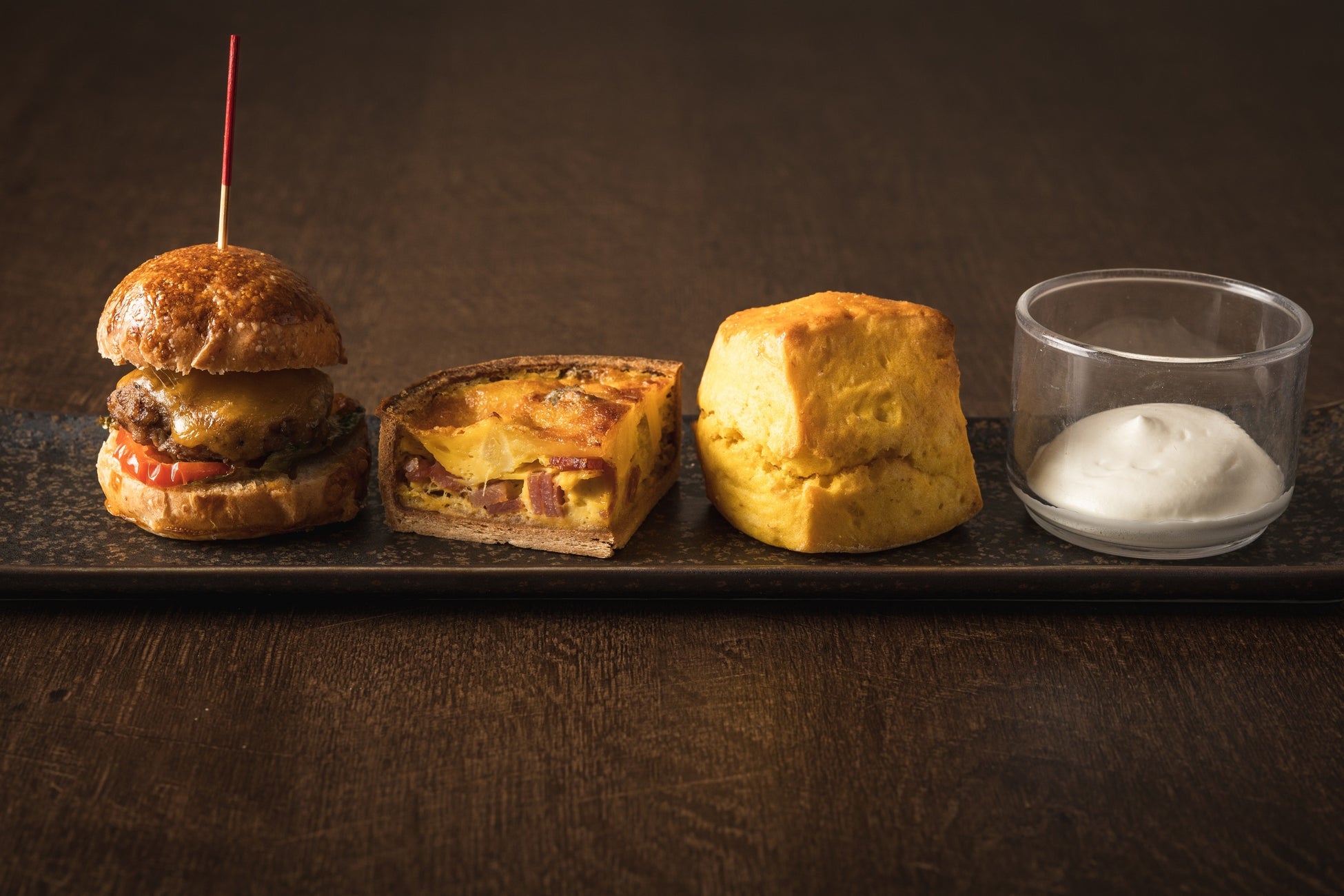 2022年9月・10月のアフタヌーンティーのテーマは「秋の収穫祭」。日本全国から選りすぐりの食材で作り上げた、五感を刺激するスイーツ・セイボリーをラインナップしました。3段のケーキスタンドには、「栗拾いモンブラン」や「鳴門金時のクロケット」、「安納芋のポテトサラダ」などが勢ぞろい。ほか、別添えとしてバーガーやキッシュ、カボチャのスコーンも味わえる内容になっています。全19品にものぼるスイーツ・セイボリーはすべて自家製。各種紅茶などのドリンクがフリーフローで付いたアフタヌーンティーです。