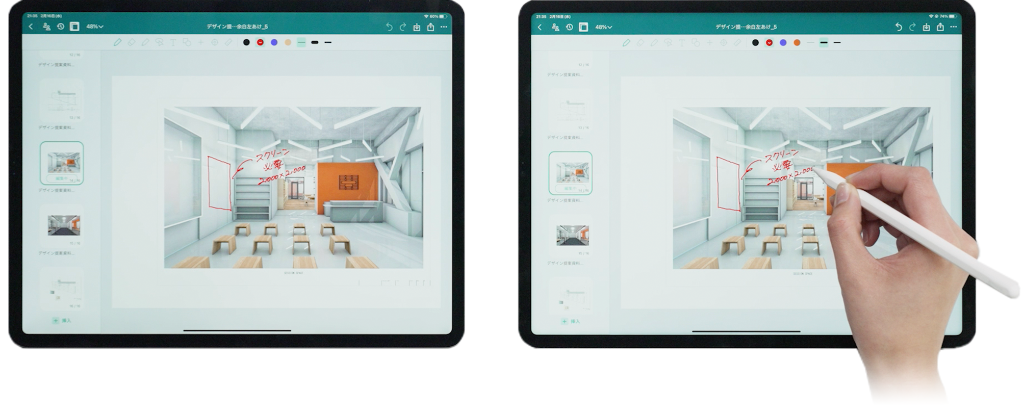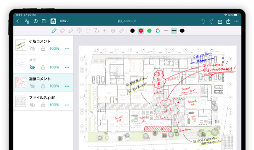 今回新たに複数ページにわたる図面をリアルタイムに共同編集できる機能や、複数パターンあるアイデアのメモをレイヤーにして整理できる機能が追加された。現場で実際にBuddyBoardを使用するユーザーの声を生かすことで、ユーザーの業務生産性の向上へダイレクトに貢献するアプリに進化している。