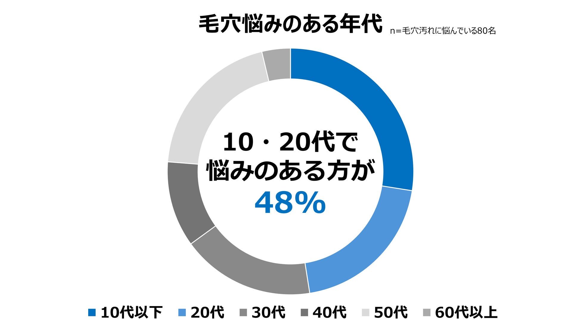 ・毛穴悩みを抱える人の約半数は若年層(10代28%、20代20%)