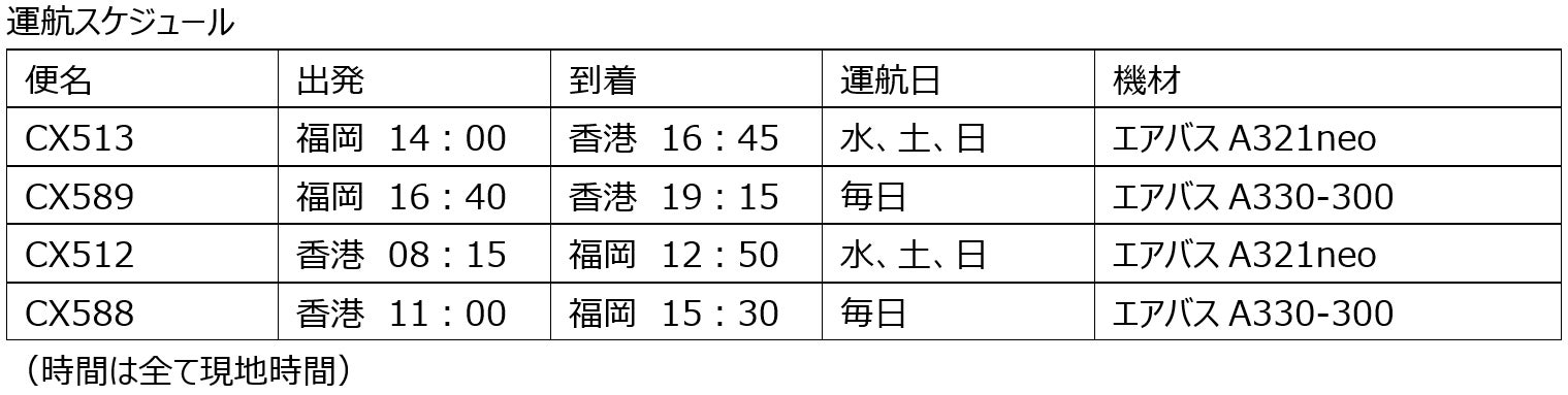 福岡⇔香港間を毎日運航。水、土、日曜日は2便を運航しています。午後に福岡を出て香港経由で、ヨーロッパ、オセアニア、東南アジア、中近東、アフリカ、アメリカの30か国/地域80以上の都市へ便利に乗り継げます。
