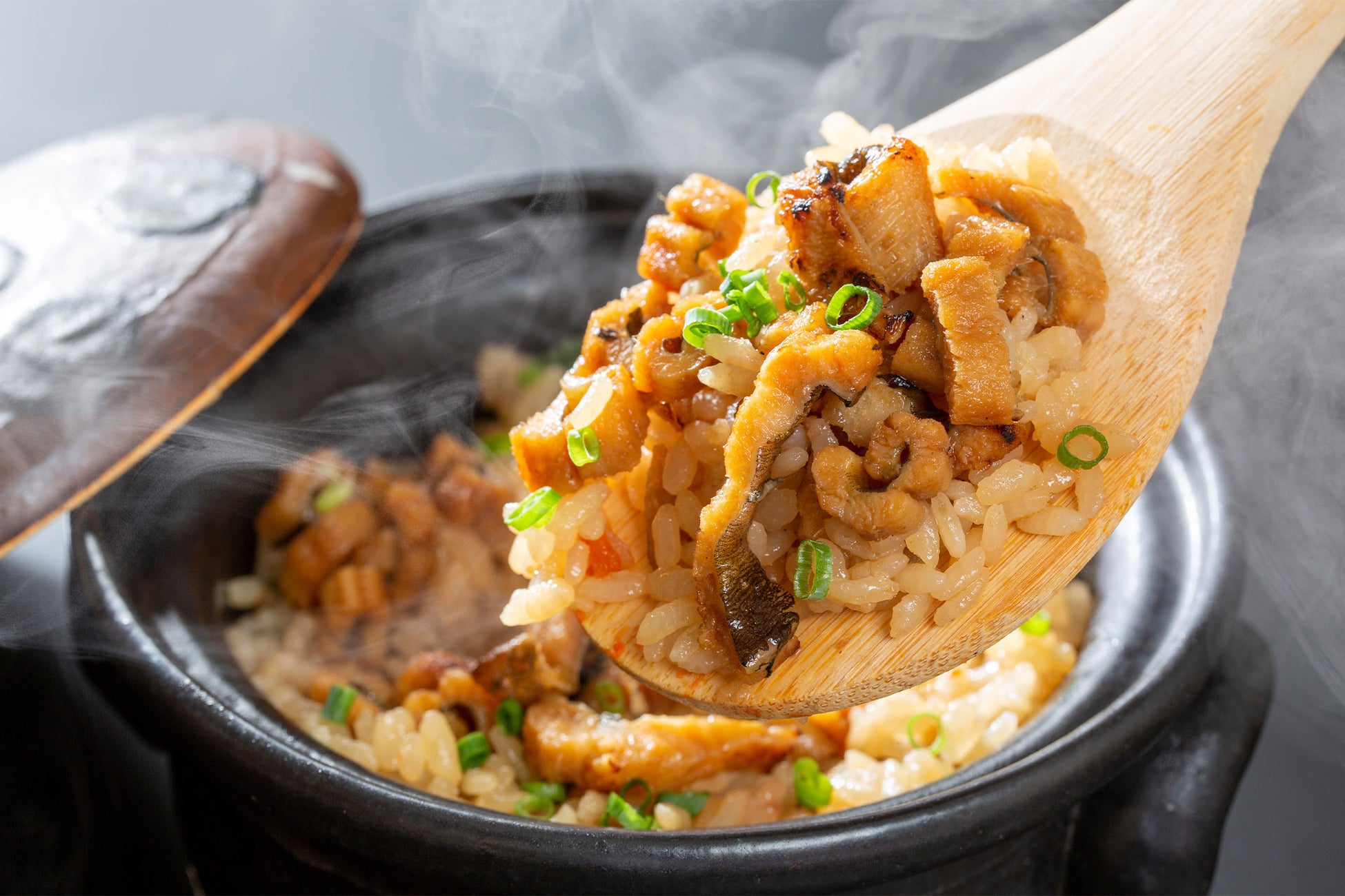 瀬戸内名物の穴子めしを、釜めしでご提供。おひとり様用の釜で、お席で炊きたて熱々をお召し上がりいただけます。蓋を外した瞬間に広がる、食材の旨みあふれる香りとおこげの香ばしい香りがたまりません。