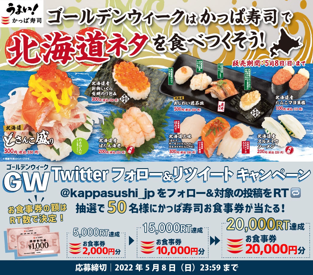 2022年4月29日(金・祝)〜5月8日(日) かっぱ寿司公式Twitterにて