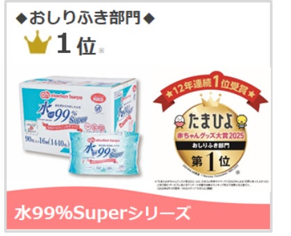 おしりふき部門 第1位「水99%Superシリーズ」は、今回の受賞で12年連続1位を獲得!
