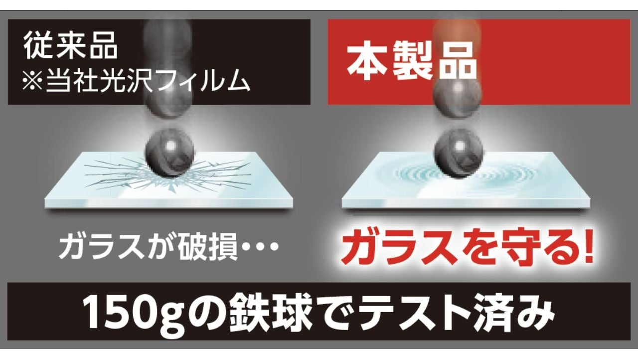 - 150gの鉄球でテスト済みの衝撃吸収フィルムがガラスを保護(全タイプ共通仕様)