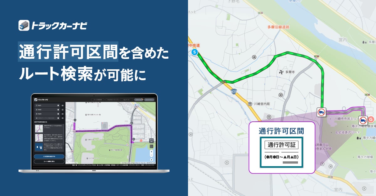 株式会社ナビタイムジャパン(代表取締役社長:大西啓介、本社:東京都港区)のトラック専用カーナビアプリ『トラックカーナビ by NAVITIME』は、2025年10月8日(水)より、Web版にて「通行禁止道路通行許可」(以下、通行許可)を考慮したルート検索機能を提供開始いたします。