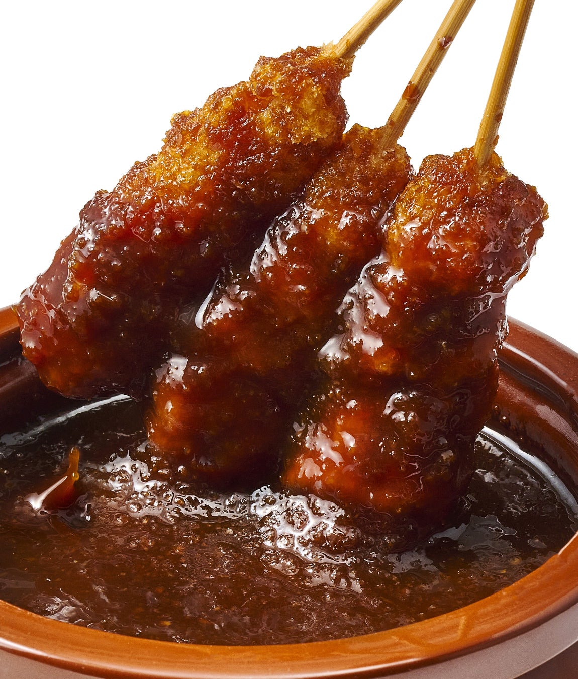 ニンニク醤油をベースに、串カツ田中独自の出汁を配合しており、ガツンとくるニンニクの香りと出汁の旨みが溶け込んだ深みがある味わいに仕上げました。このタレをたっぷりと付けた状態で、お客様にご提供します。