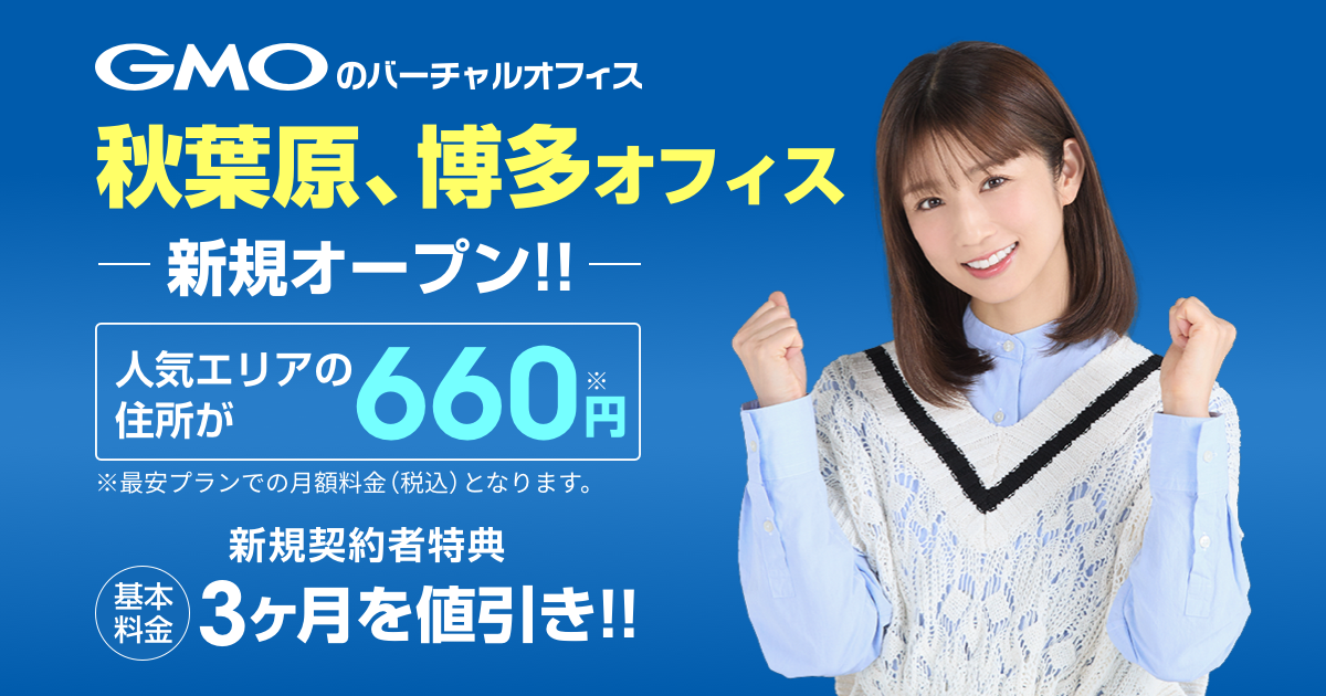 バーチャルオフィスサービス「GMOオフィスサポート」、2022年11月1日より新たに秋葉原、博多の住所提供を開始!