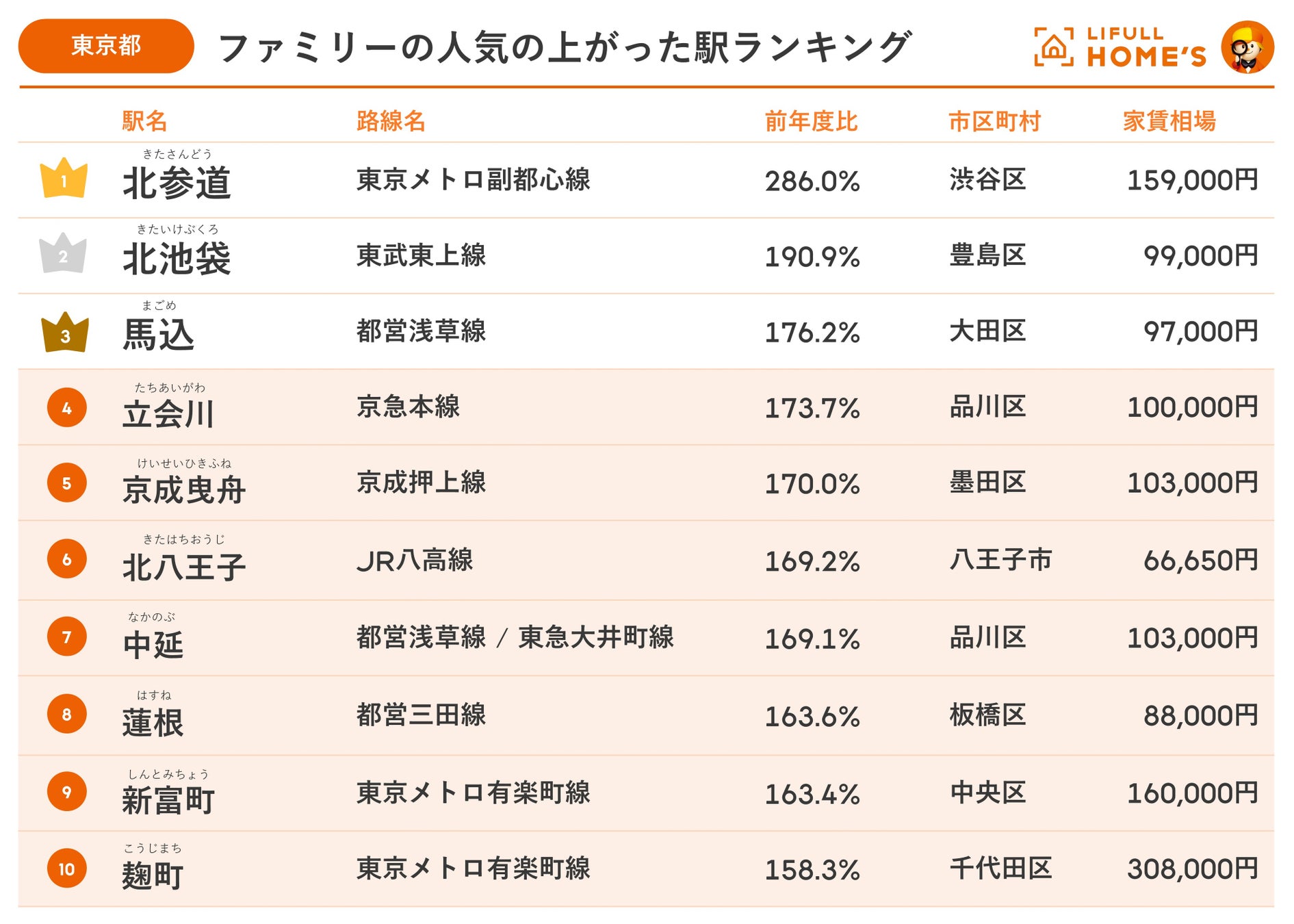 ファミリー向き物件の「人気の上がった駅ランキング」をLIFULL HOME'Sが発表