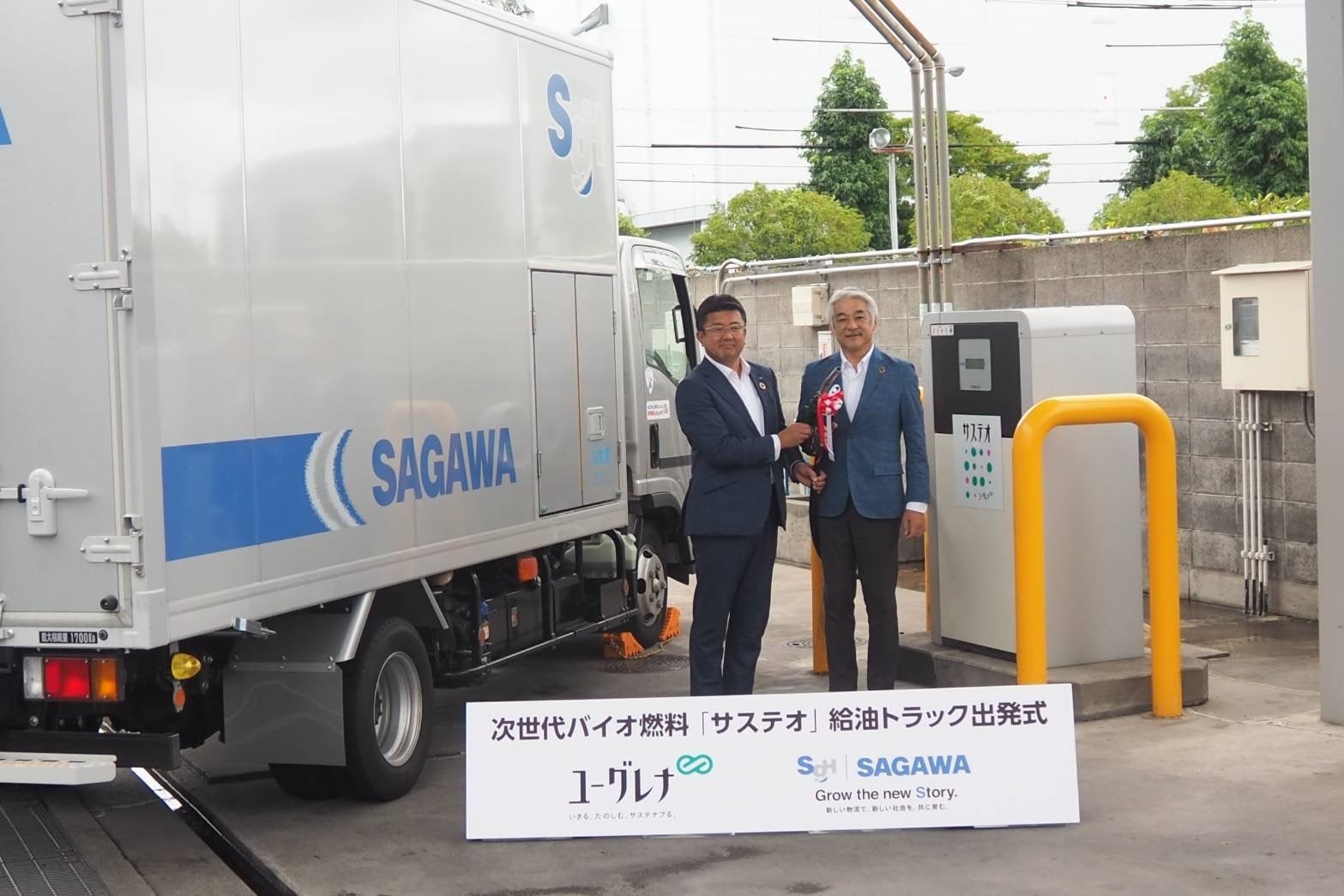 このたび、本プロジェクトの初期目標である300口を達成し、佐川急便浜松営業所のインタンク(自社敷地内の給油スタンド)に約3,000リットル※2の「サステオ」を給油、9月6日より佐川急便の配送でお届けするユーグレナ社製品などを対象に、「サステオ」の使用を開始しました。