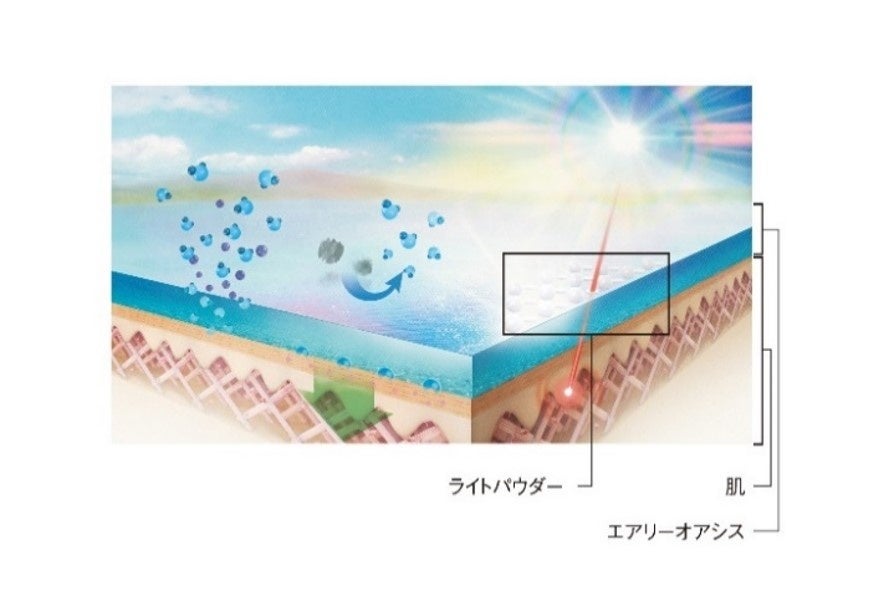 ・自分を取り巻く「空気・光」の環境を活かし、生命感あふれるような水ハリ艶仕上がりを目指す設計「オアシスメーク処方」を採用