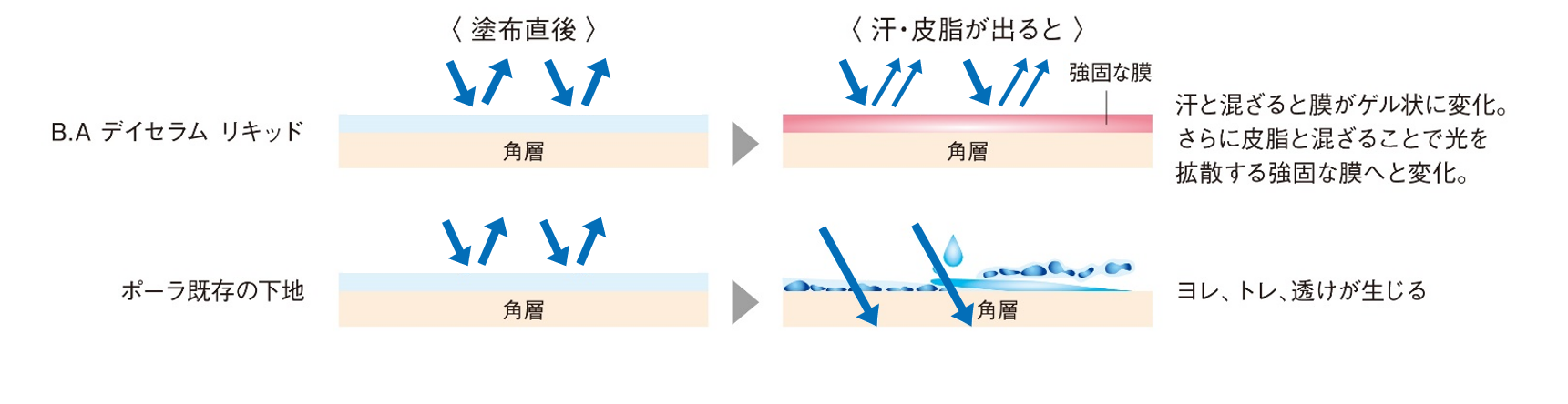・まるでB.A ローションのように、とろみがありながらも、みずみずしくすっと肌に伸び広がるテクスチャー