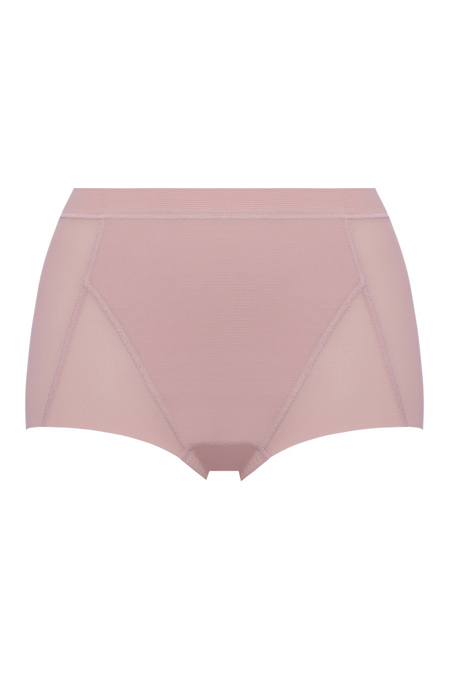 おなか部分はパワーネットを裏打ちし、ほどよくサポート。身生地には、透け感をおさえたメッシュは接触冷感素材を使用し、涼しい履きごこちに。ウエストは折り返し仕様で、夏の暑苦しさを軽減するソフトな着用感です。脚口はフラット仕様で、アウターにひびきにくく仕上げました。