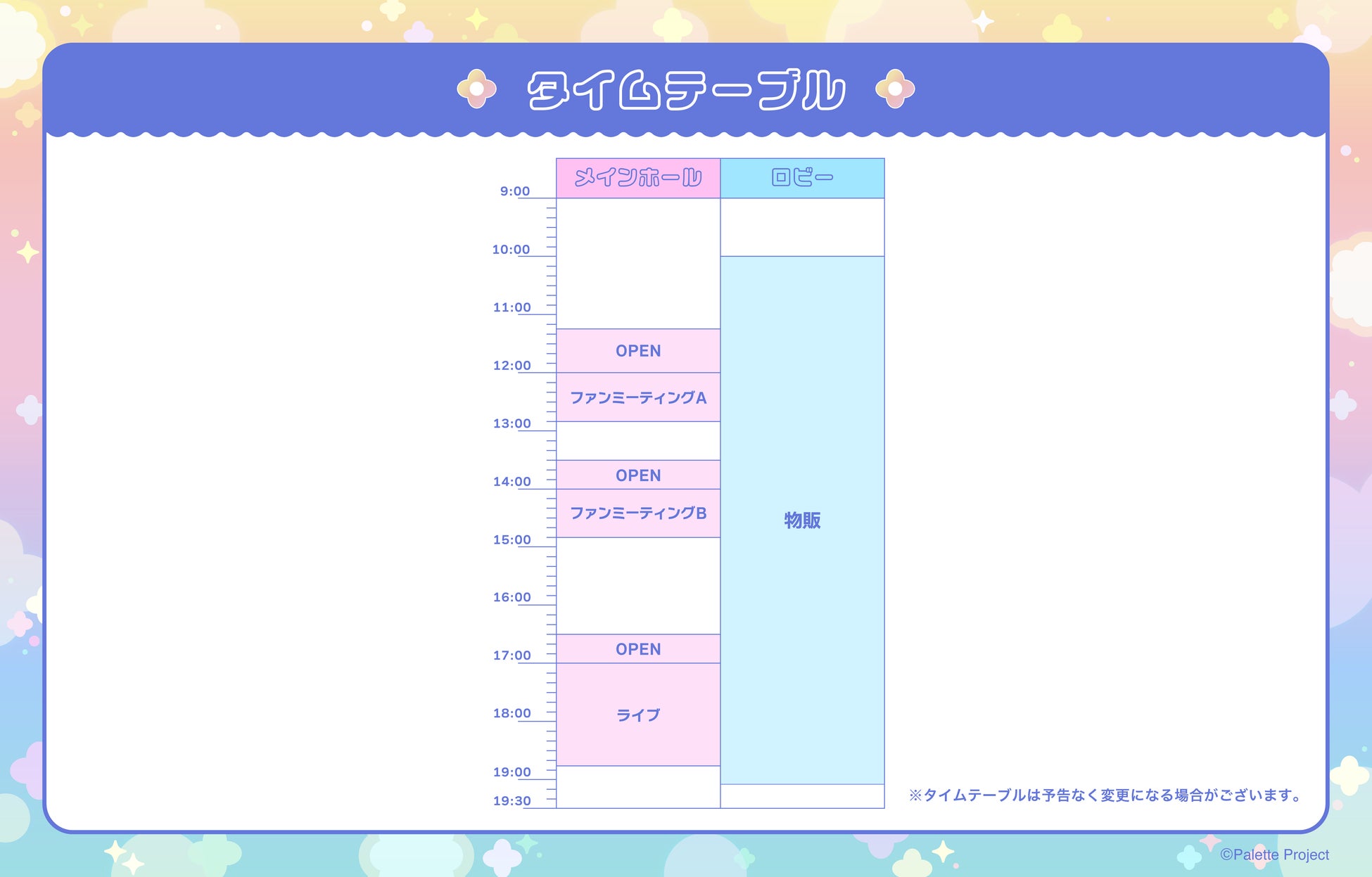 ※予定は変更する可能性がございます。あらかじめご了承くださいませ。