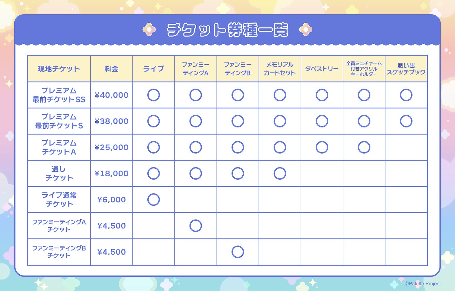 内容:最前列(センター寄り)でのファンミーティング A / B・ライブ鑑賞