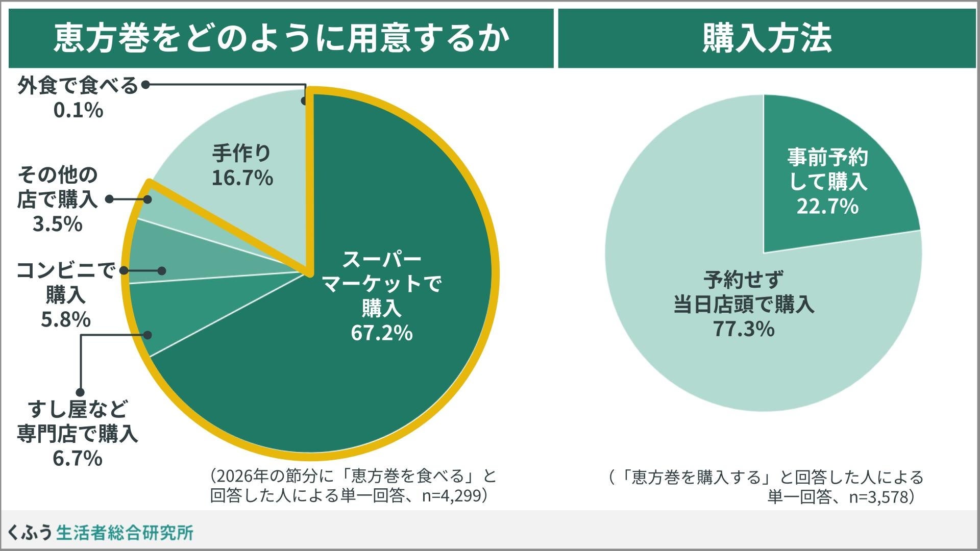 生活者と社会の生活満足度向上に資する研究・発信を行うくふう生活者総合研究所(以下、くふう総研)は、生活者6,773名を対象に「恵方巻」に関する調査を実施しました。