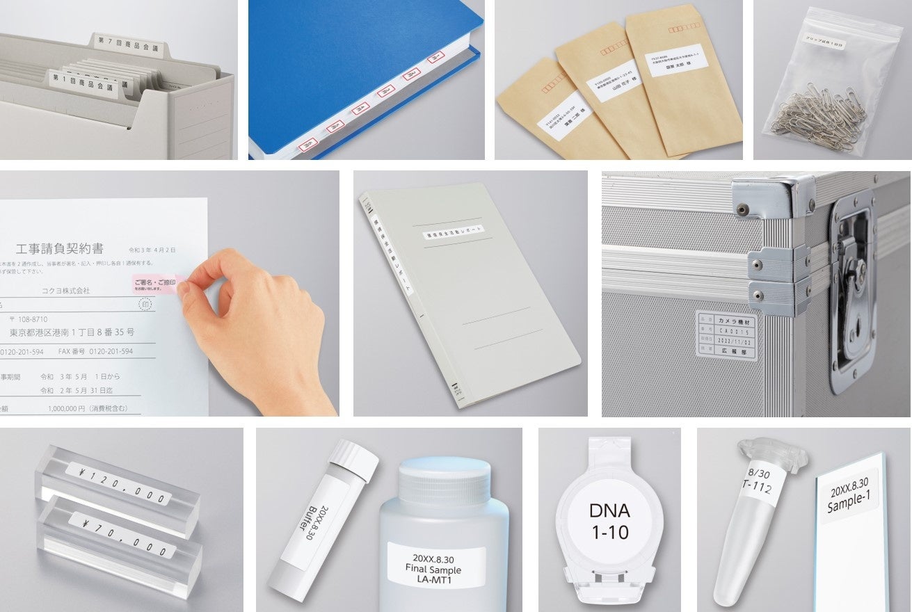 インデックスラベルやファイリング用のタイトルラベル以外にも、宛名や備品管理用のラベルなどコクヨの100種類以上のラベルに対応しております。対応ラベルにつきましては、タイトルブレーン商品HPをご確認ください。