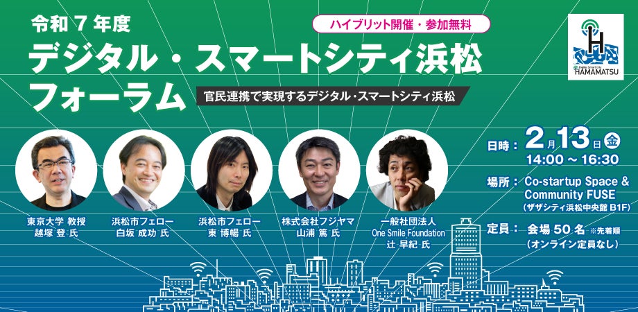 2月13日(金) 開催! 令和7年度『デジタル・スマートシティ浜松フォーラム 』〜官民連携で実現するデジタル・スマートシティ浜松〜