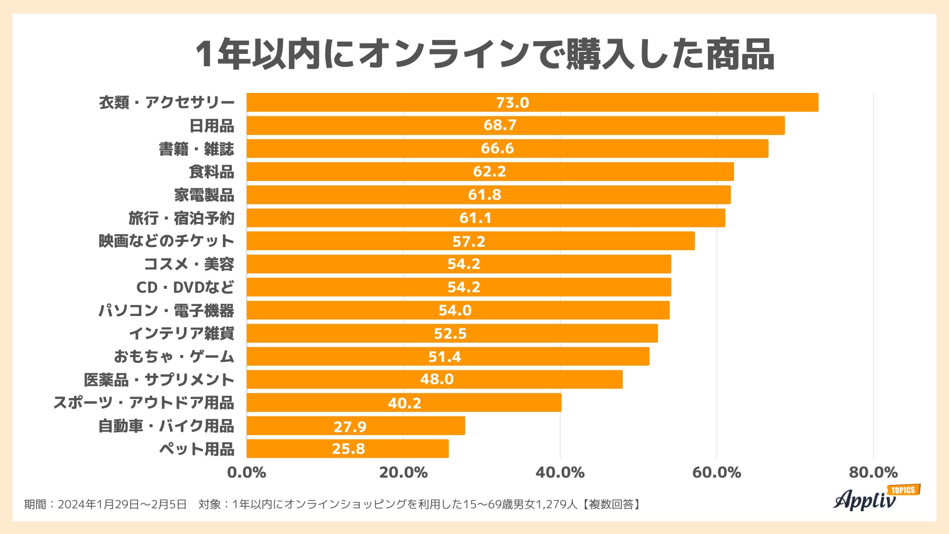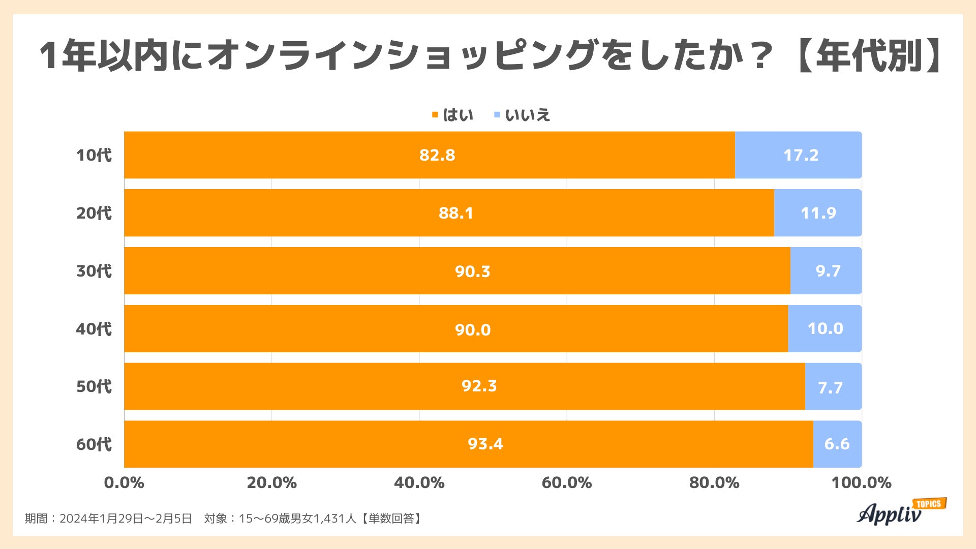 「Appliv TOPICS」は15~69歳男女1,431人を対象に、2024年1月29日~2月5日の期間で、オンラインショッピングに関するアンケートを実施しました。