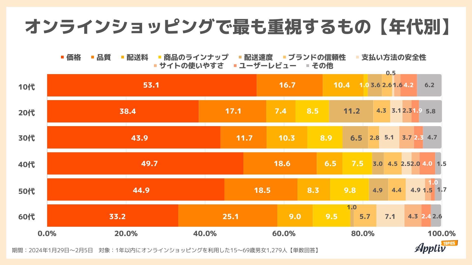 オンラインショッピングで最も重視するのは「品質」よりも「価格」