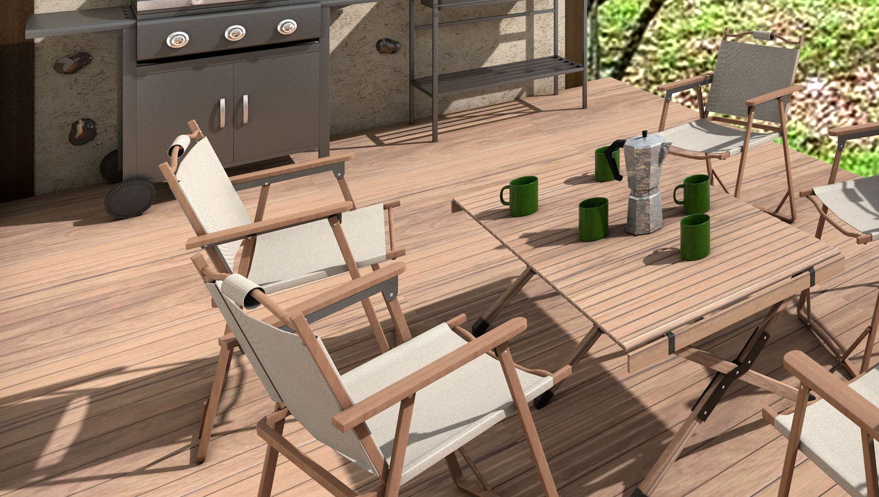 陽射したっぷりのデッキ、または川のせせらぎが聞こえるデッキの2タイプのデッキがございます。