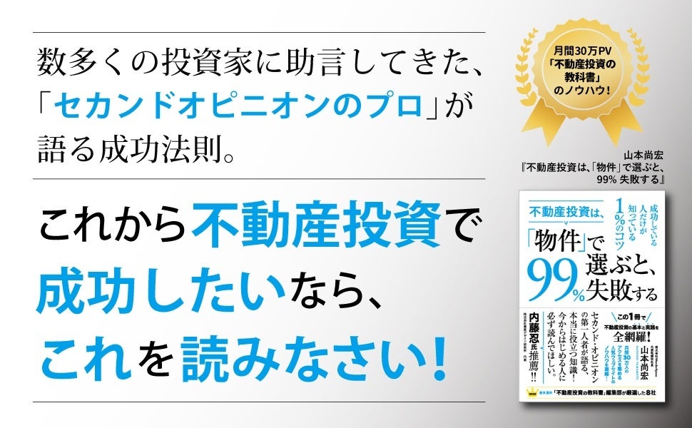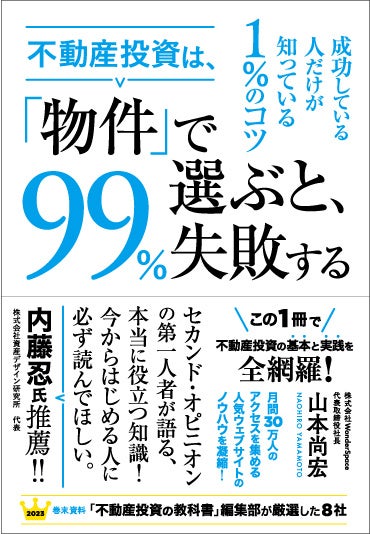 『不動産投資は、「物件」で選ぶと、99%失敗する』本日発売! 月間30万アクセス「不動産投資の教科書」のノウハウを一冊に凝縮、セカンドオピニオンのプロが教える、不動産投資入門の決定版