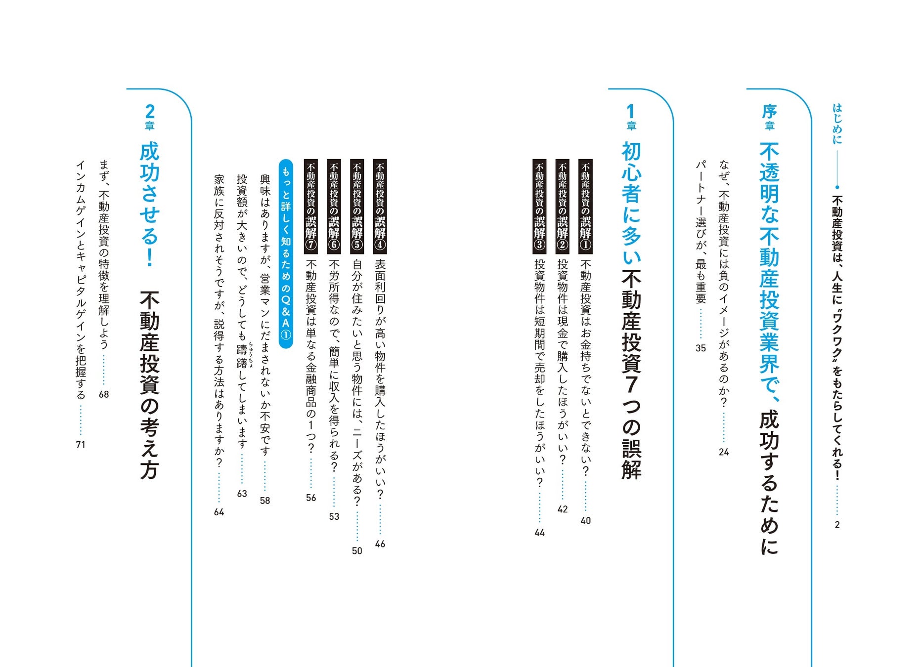 「よくある誤解」「失敗事例」なども盛り込みながら、不動産投資の基礎知識から実際のはじめ方、融資を受ける方法についてまで、わかりやすく解説。重要だけれども、あまり知られてない「不動産経営で大切な指標」や「パートナーの重要性」にも言及します。