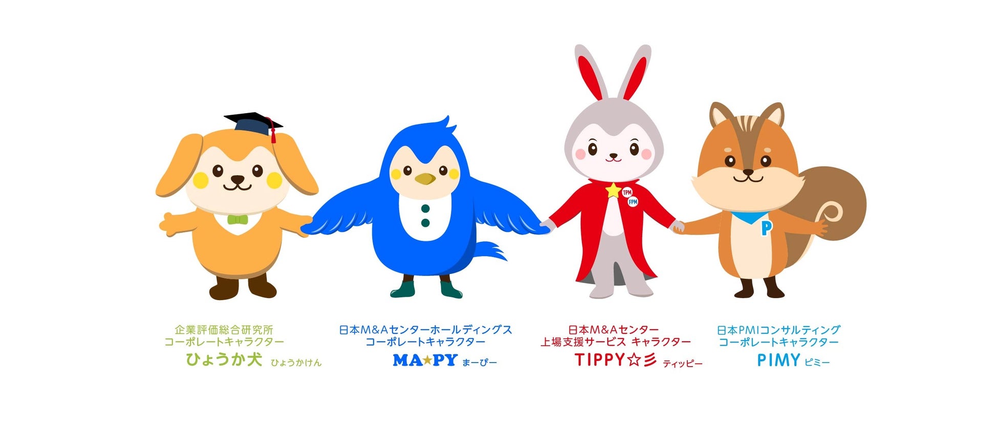 株式会社日本M&Aセンターホールディングス(以下、当社 / 本社:東京都千代田区 / 代表取締役社長:三宅 卓)は、パーパスとして掲げる「最高のM&Aをより身近に」を象徴する存在として誕生した「MA★PY(まーぴー)」に続き、このたび新たにコーポレートキャラクター「PIMY(ピミー)」「TIPPY☆彡(ティッピー)」「ひょうか犬(ひょうかけん)」が誕生したことをお知らせいたします。