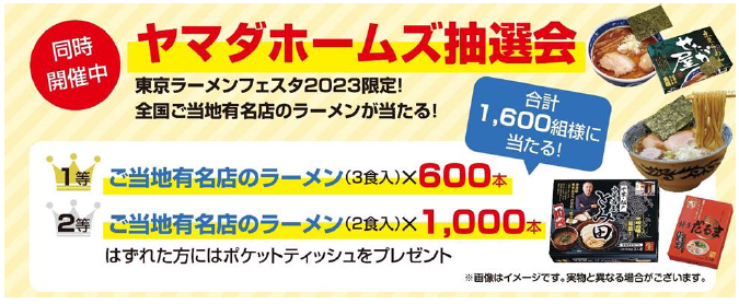ヤマダホームズのブースへご来場いただき、アンケートにご回答いただいた方の中から抽選で、合計1,600 組様に、全国ご当地有名店のラーメンをプレゼントする抽選会も同時開催します。