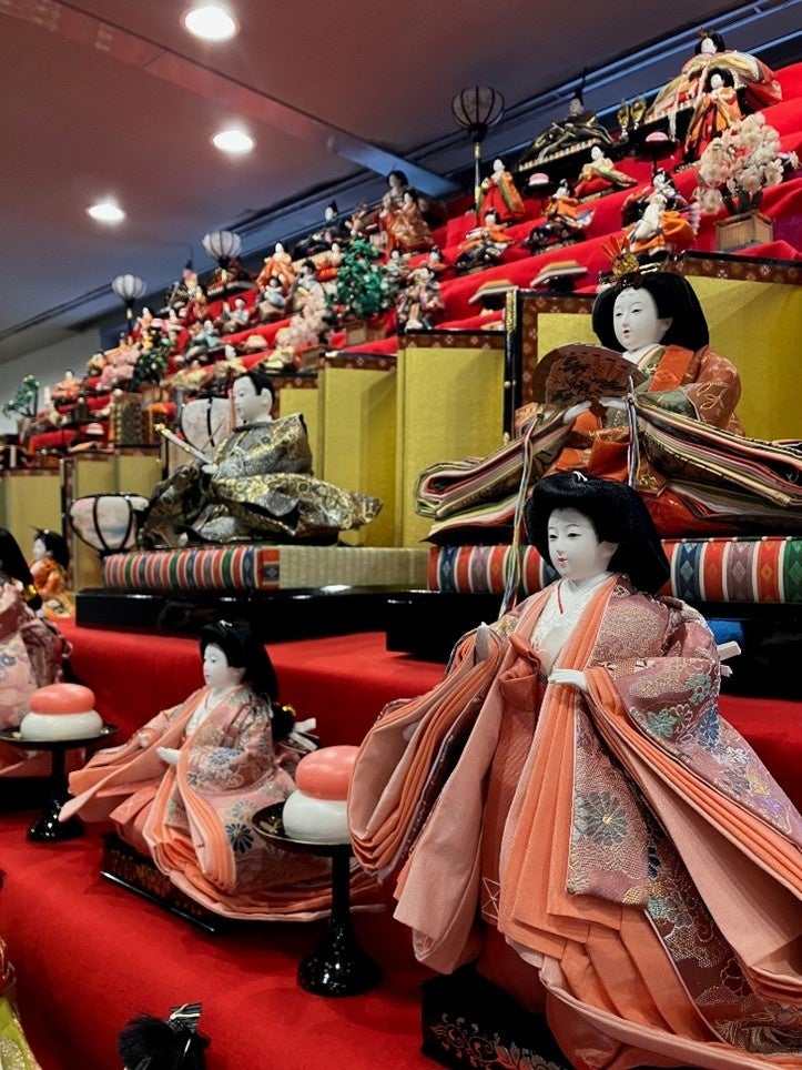ロビー空間に、昨年より約100体増となるひな人形を展示。