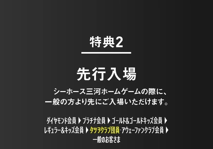 シーホース三河ホームゲームで、一般の方より先にご入場いただけます。