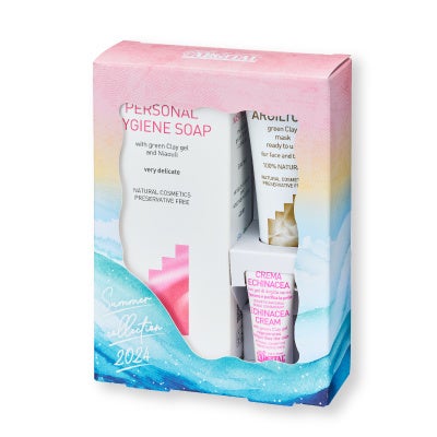 スーッと清涼感のある洗い上がりで大人気の『アルジタル デリケートハイジーンソープ』、夏の肌悩みにぴったりなうるおう海泥のパックと、肌荒れを防ぐ“お守りクリーム”のミニサイズをセレクト。