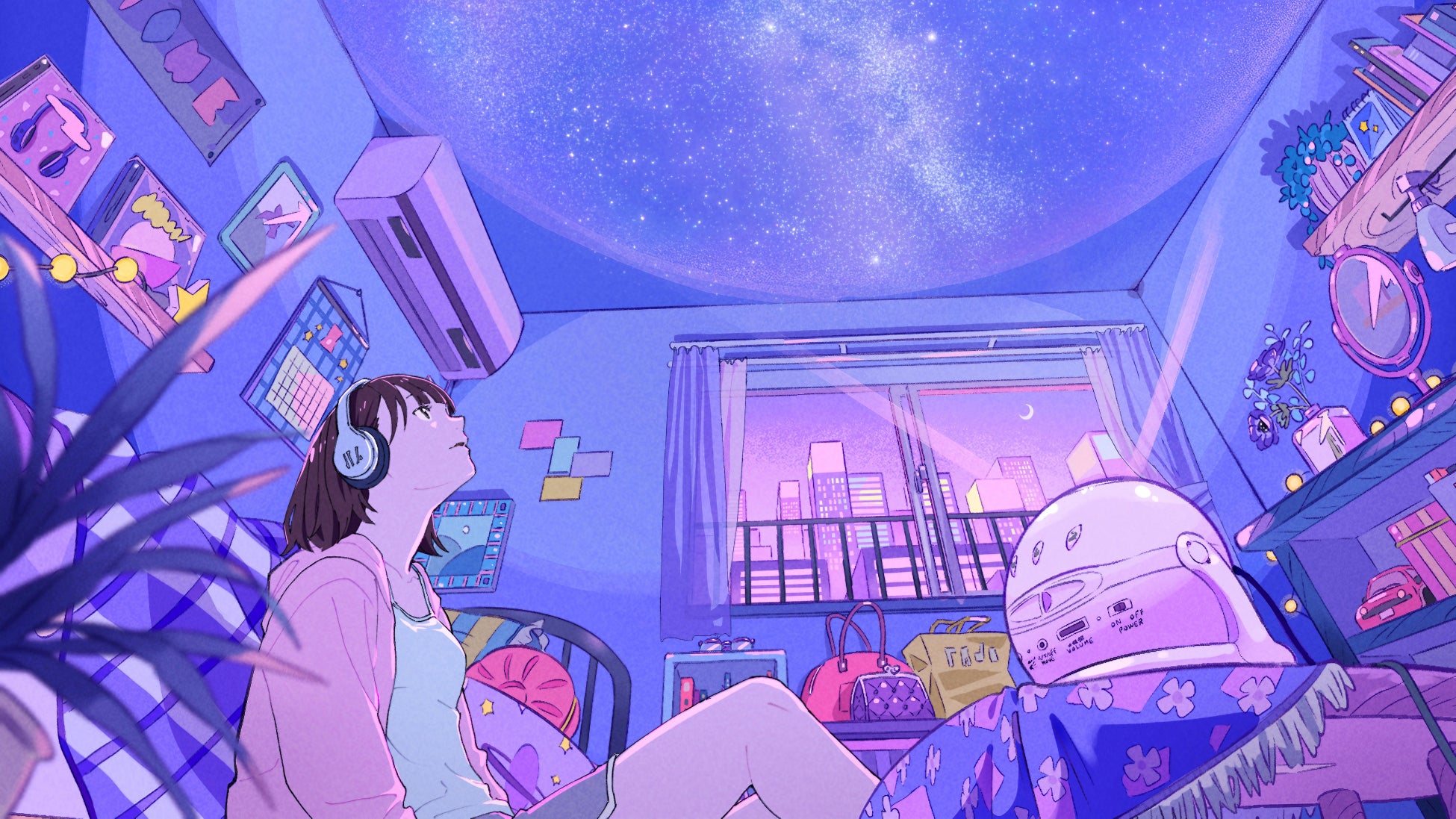 『Homestar』は、「自然の星が、いつでもそばにある暮らし」など、時代の変化に応じて、日本国内における天文カルチャー形成の一端を担ってきました。そして、『Homestar』のブランド刷新に伴い、「夜が好き」を新しいブランドメッセージに掲げ、家庭用プラネタリウムをもつすべての人と、若年層ユーザに向け「自分だけの時間を夜に作り出すことができる」魅力を改めて伝えるコミュニケーション施策を展開します。新しいコミュニケーション施策の第1弾は、エイベックス・エンタテインメント株式会社が制作プロデュースを担当し、ホームページおよび、ブランドムービーを一新します。新しいブランドメッセージを伝える、ブランドムービー、ホームページのイラストには、タミウラ氏とふれい10氏、楽曲は來-Ray-氏を起用しました。夜の一人の時間に『Homestar』を投影し、スマートフォンから楽曲「f.i.n」を再生。スマートフォンを置くことで、SNSを初めとする現実世界から離れて自分自身を見つめなおす人物の一コマを表現しています。