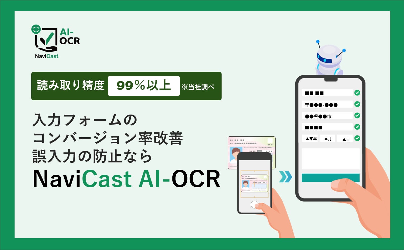 NaviCast AI-OCRは、会員登録や口座開設などの入力フォームにおける「不」を解消すべく、企業の業務効率化やユーザーの利便性向上を目的として開発されました。