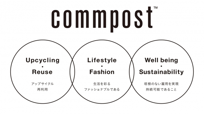共有、共同、常識、良識を意味する「common (sense) 」と郵便・提示する・標柱を意味する「post」を組み合わせた造語。敷居が高いと思われがちな「アップサイクル」という考え方に、ファッションの分野から、スタイルのある新しい価値や考え方を提示していく。これからの地球環境や人のはたらき方・暮らし方に対して、新しい常識を示していきたい。そんな想いから誕生したサスティナブルプロダクトブランド。