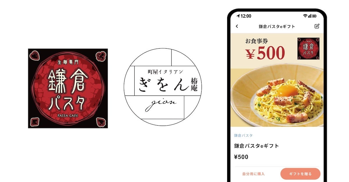 eギフトプラットフォーム事業(※1)を展開する株式会社ギフティ(本社:東京都品川区/代表取締役:太田 睦、鈴木 達哉/以下、ギフティ)は、株式会社鎌倉パスタ (本社:岡山県岡山市/代表取締役社長:齋木 健作/以下、鎌倉パスタ)に、eギフトやチケットを発行し販売する「eGift System」(※2)サービスを提供しました。2024年12月より、ギフティが運営するWEBサービスおよびスマートフォン向けアプリ「giftee®」(※3)およびeギフトを活用した法人向けサービス「giftee for Business」(※4)にて、「鎌倉パスタ」および「ぎをん椿庵」の全国193店舗(※5)でご利用いただける「鎌倉パスタeギフト」の取り扱いを開始いたしましたのでお知らせします。