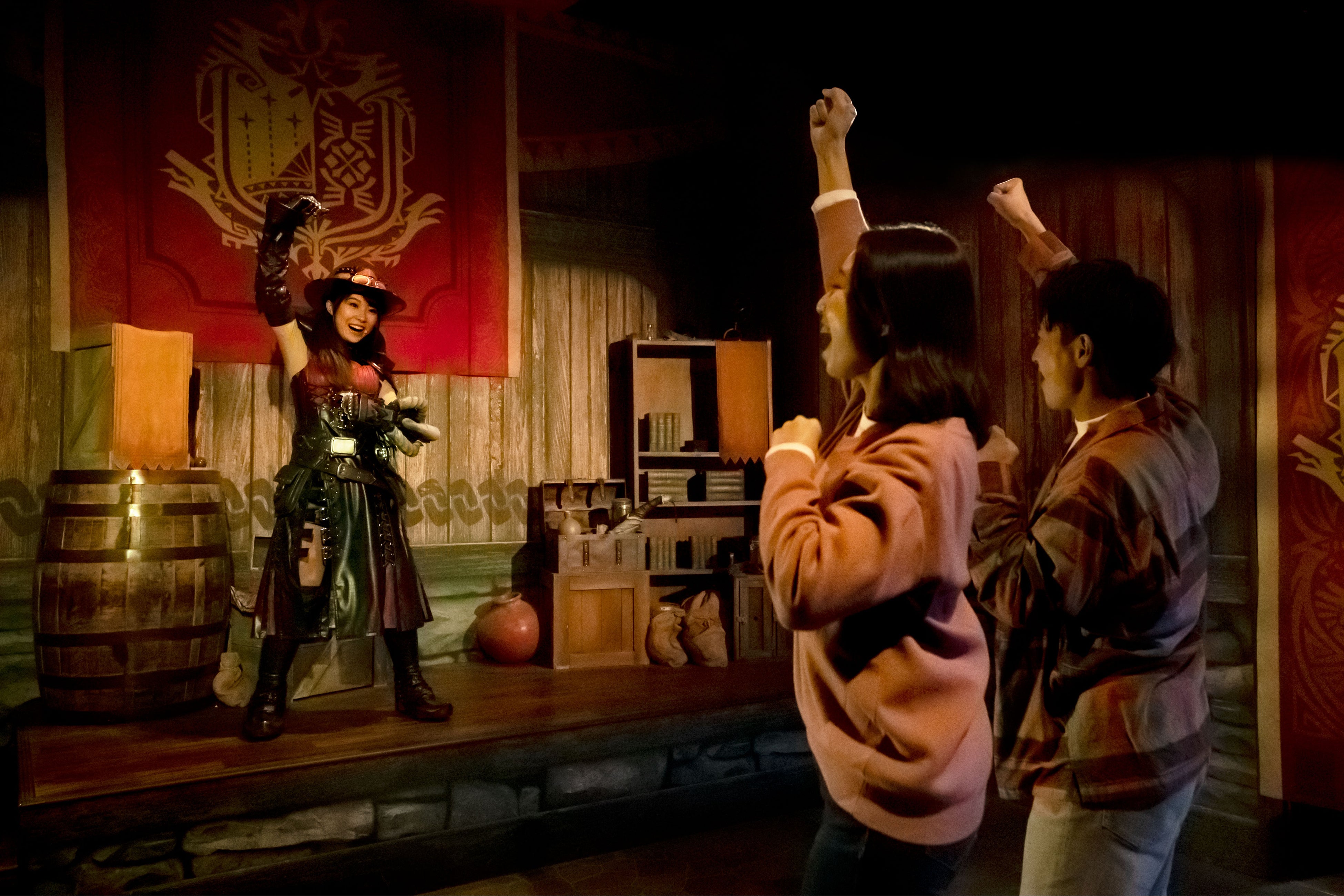 「今日はこのアトラクションを一番楽しみに来場しました。(国際的な賞にノミネートされたと聞いて)世界に誇れるものがまたひとつ日本に増えたのはとてもうれしいことだなと思います。実際体験したら、崖をよじ登ったり、モンスターと対峙する感覚とかすべてがリアルで臨場感があって、ハンターになりきることができて超楽しかったです。」(10代男性グループ/静岡県在住)
